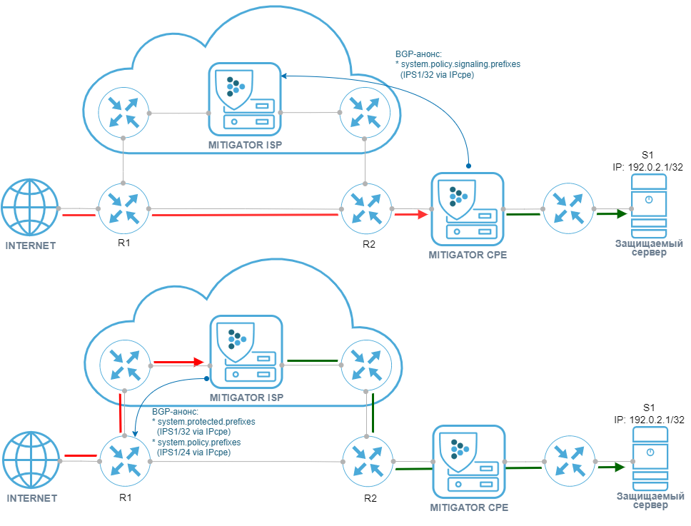 system.protected.prefixes. MITIGATOR ISP рассылает список BGP-соседям, сообщая,