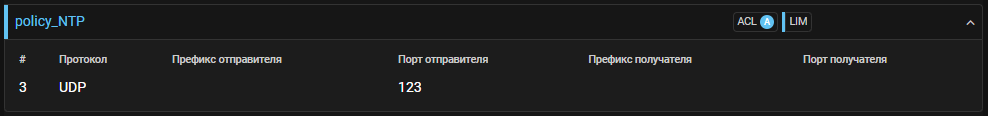 # Если в сети нужен трафик с любых NTP и DNS, то обработаем его дальше в политике защиты.