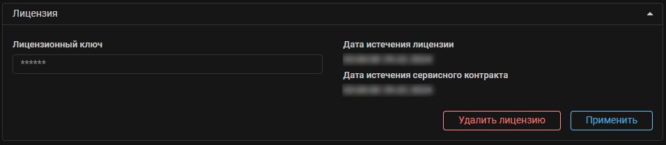Лицензионный ключ задается в карточке «Лицензия» на странице «Настройка системы».