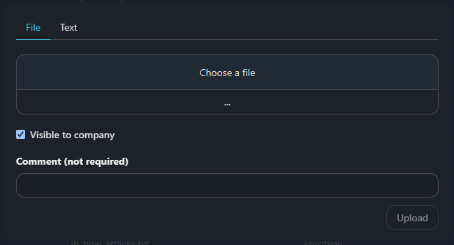 Флаг «Visible to company» позволяет указать, будет ли загруженный файл доступен другим пользователям вашей компании. Если флаг не установлен, файл будет доступен только загрузившему его пользователю.