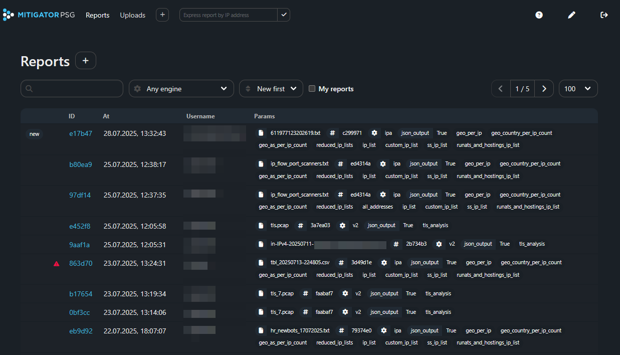 Тегами помечаются название анализируемого файла, его хеш, а также параметры, с которыми анализ был запущен. Подробное описание отчётов в статьях о механизмах анализа. На странице есть пагинация. Количество отображаемых на странице отчетов настраивается.
