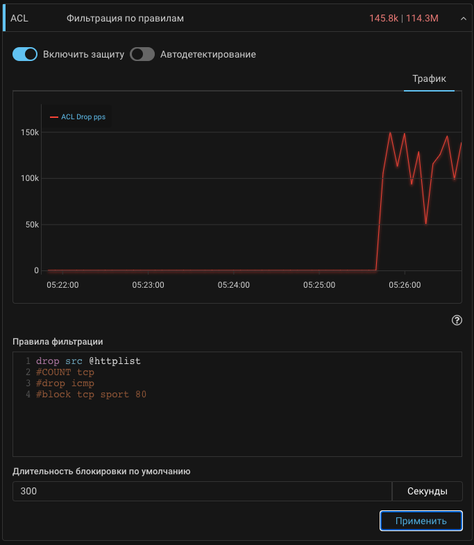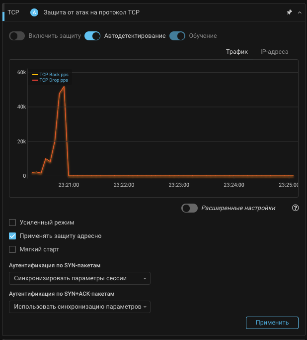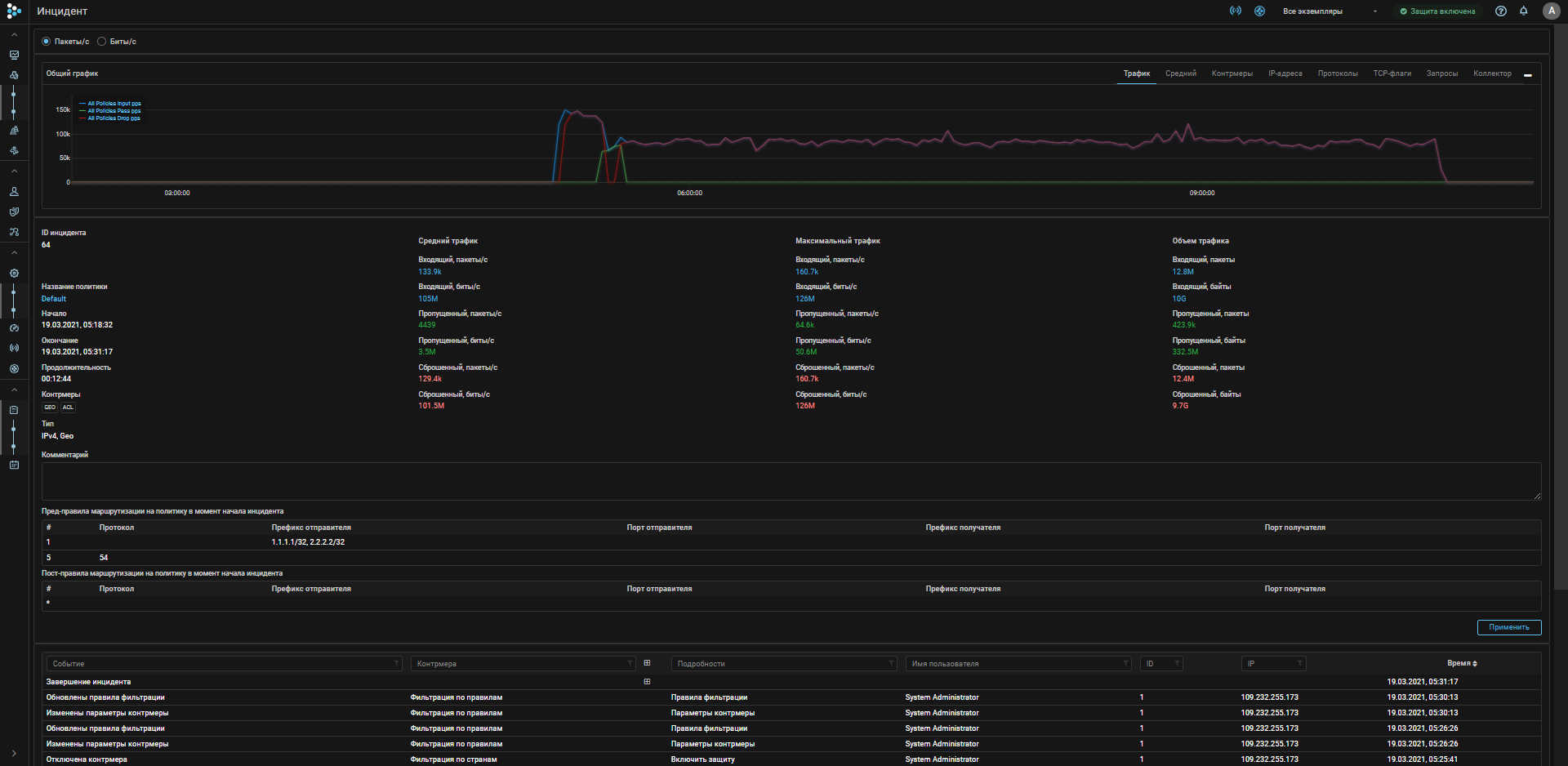 Полностью изменена логика обработки легитимного трафика и трафика атаки. Появились новые сценарии защиты. Повысилась эффективность защиты и уменьшено влияние на легитимный трафик.
