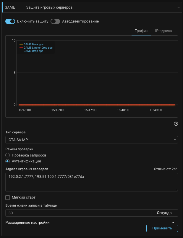 Данный метод защиты обладает существенным недостатком – новые легитимные пользователи не могут подключиться во время атаки. Поэтому на данную контрмеру стоит рассчитывать только в крайнем случае, либо если атаки пульсового типа.