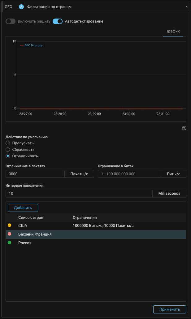 GEO. Добавлено действие по умолчанию «Ограничивать».
