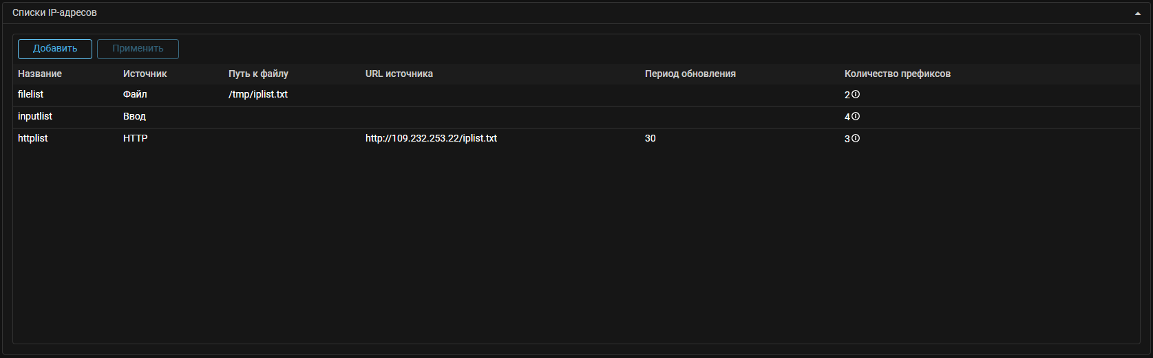 Добавлена возможность создания в системе именованных списков префиксов, что позволяет выделять группы префиксов и назначать действия для трафика сразу для всей группы.
