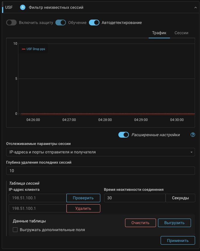 USF. Добавлена контрмера «Фильтр неизвестных сессий».