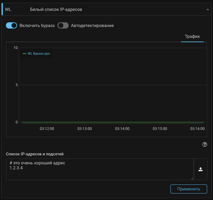 Чтобы было легче вспомнить, что это за адрес и почему с него должен проходить трафик без проверки, добавлена возможность оставлять комментарии в белом списке.