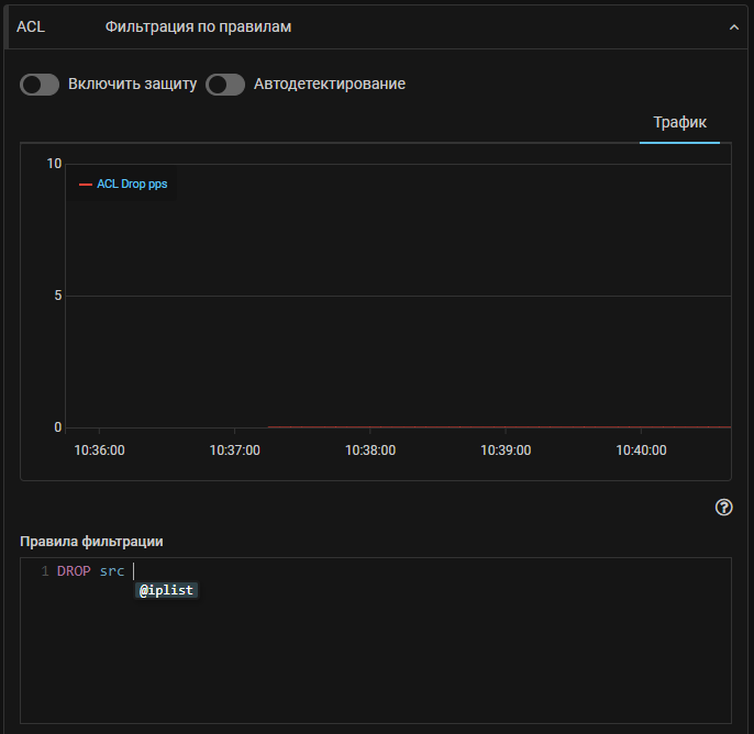 Detect. Добавлены предикаты активации BGP-анонса по входящему трафику в политику защиты.