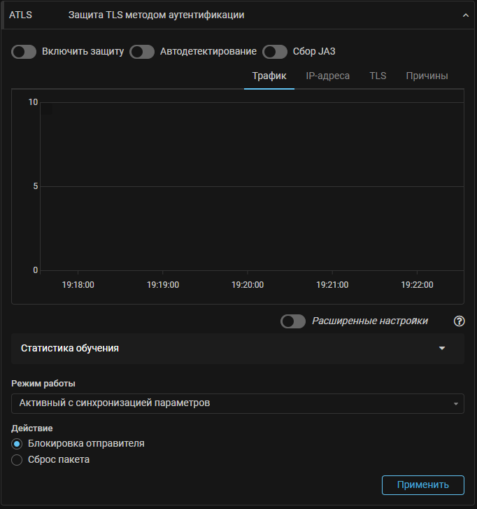 В момент включения контрмеры формируется выборка JA3-отпечатков атаки.