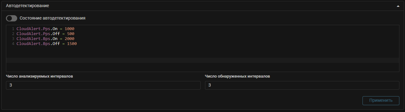фильтрации: CloudAlert.Pps.On, CloudAlert.Bps.On, CloudAlert.Pps.Off,