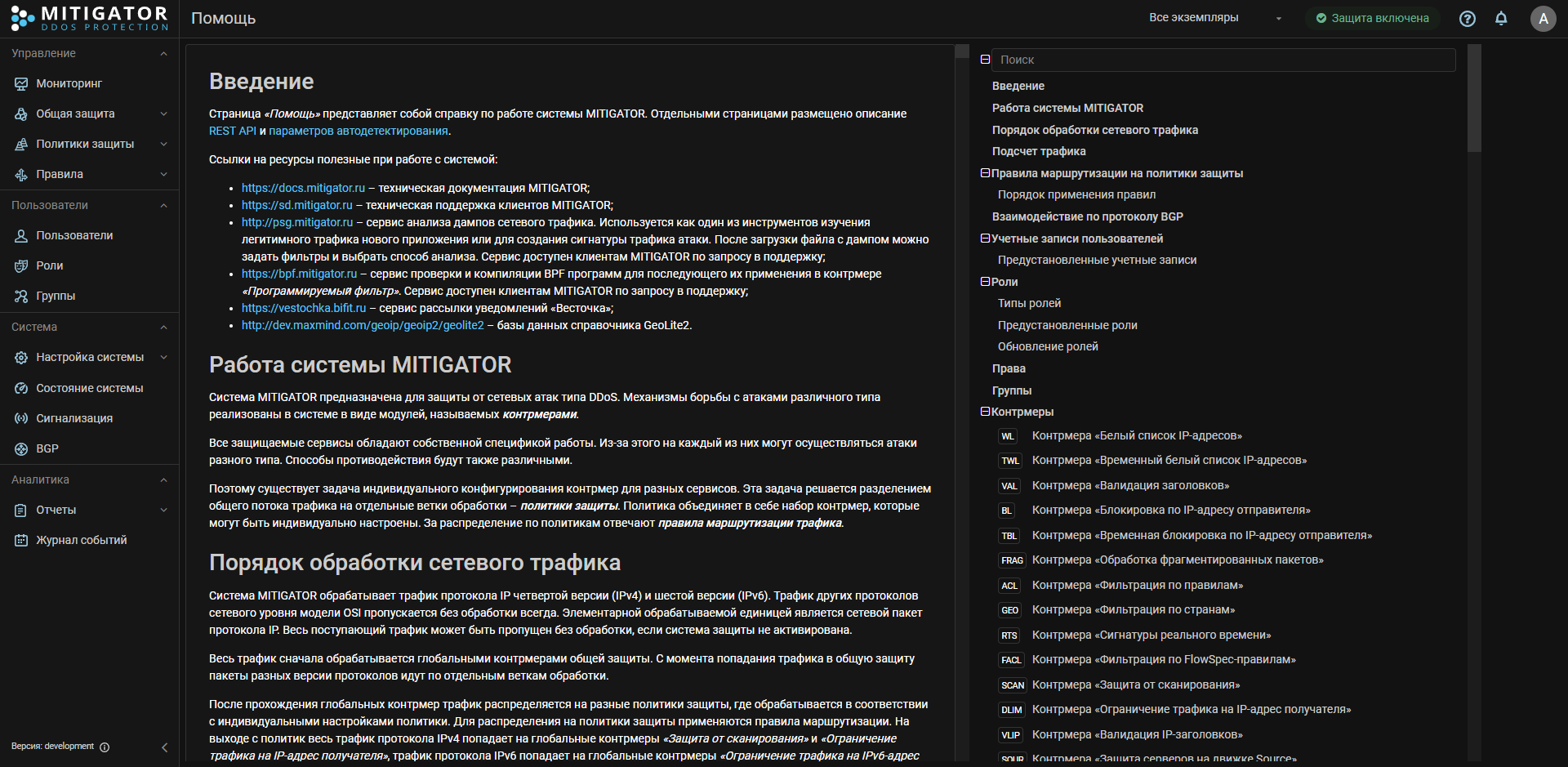 Для облегчения работы с материалами встроенной в MITIGATOR эксплуатационной документации переработано оглавление страницы «Помощь»: