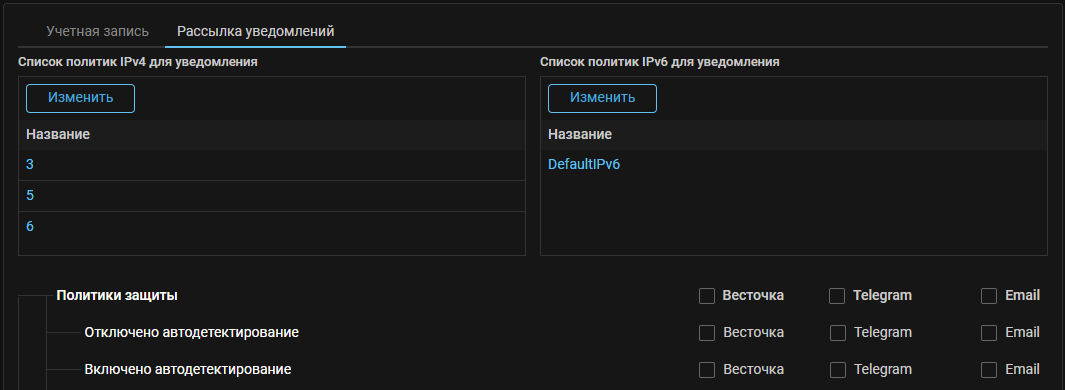 Notifications. Добавлена возможность подписываться на рассылку сообщений только из выбранных политик защиты.