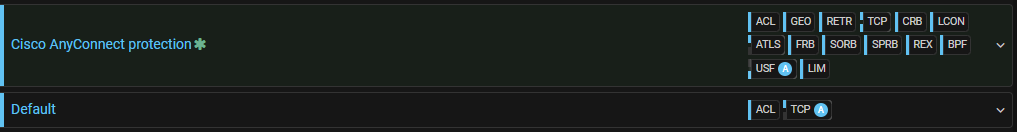 Нажатие на стрелку в заголовке таблицы политик раскрывает или закрывает списки правил для всех политик защиты.