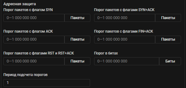 TCP. Добавлен порог активации адресной защиты по скорости трафика в битах в секунду.