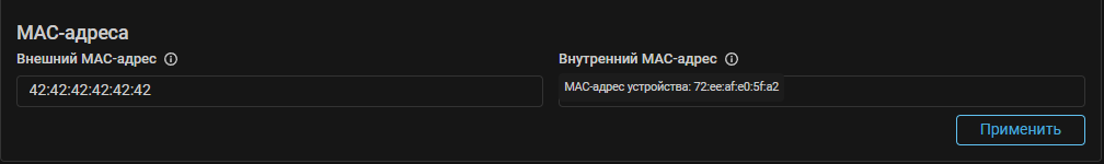 UX. Добавлено отображение текущих значений внешнего и внутреннего MAC-адресов.