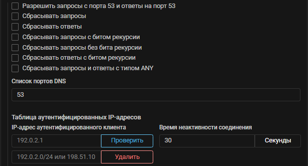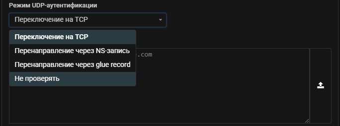 В режим UDP-аутентификации добавлена опция «Не проверять», которая отключает выполнение UDP-аутентификации DNS-запросов.