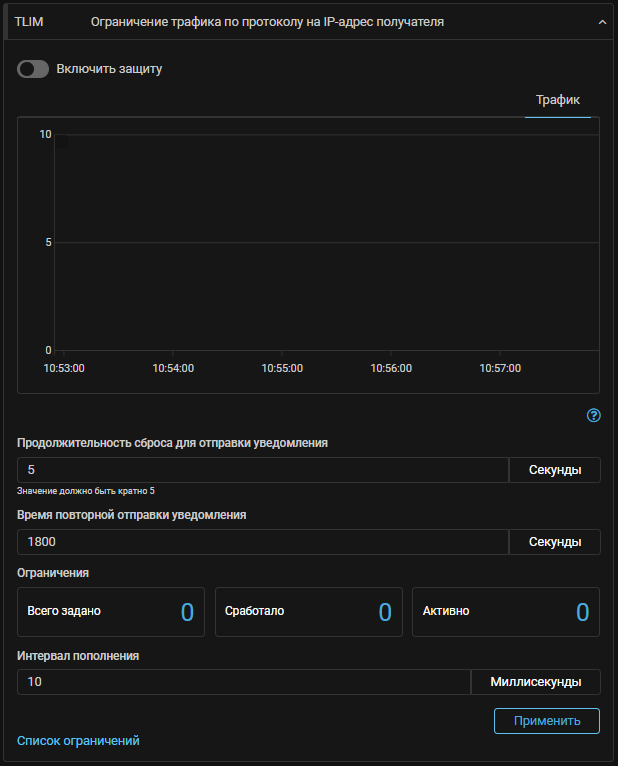TLIM. Добавлена новая контрмера «Ограничение трафика по протоколу на IP-адрес получателя».