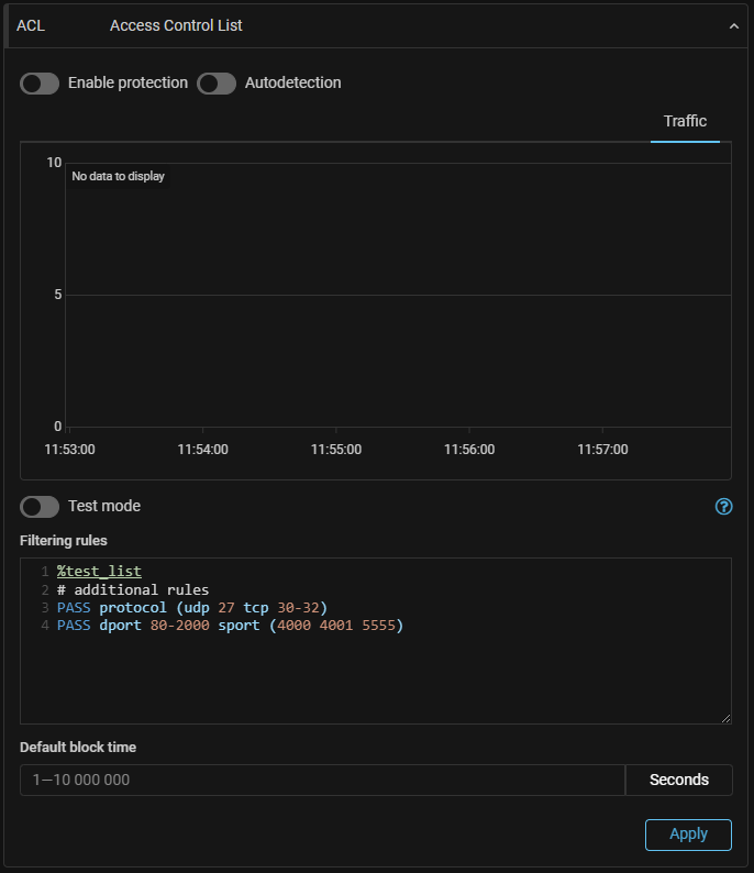 ACL. Добавлена поддержка именованных наборов правил фильтрации.