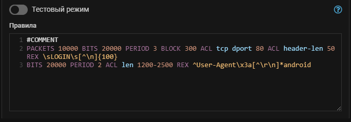 Теперь перед правилом может быть задан текстовый комментарий, для его указания используется символ «#». Комментарий после правила или в одной строке с правилом не принимается.