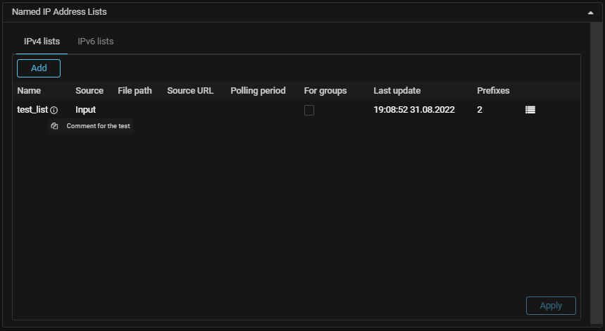 IPList. Добавлена возможность оставить текстовый комментарий к именованному списку IP-адресов.