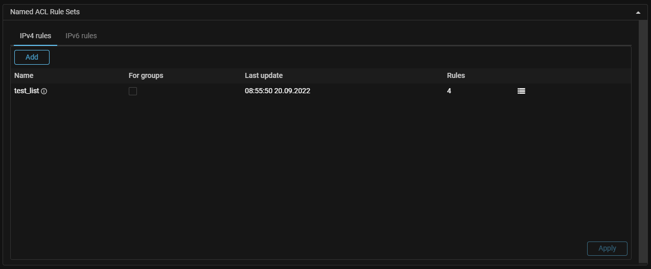 ACL6. Добавлена поддержка именованных наборов правил фильтрации.