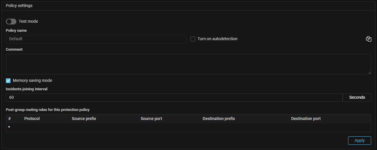Policy. Добавлен режим экономии памяти в политиках защиты.