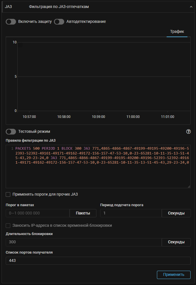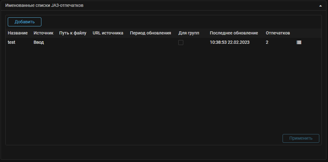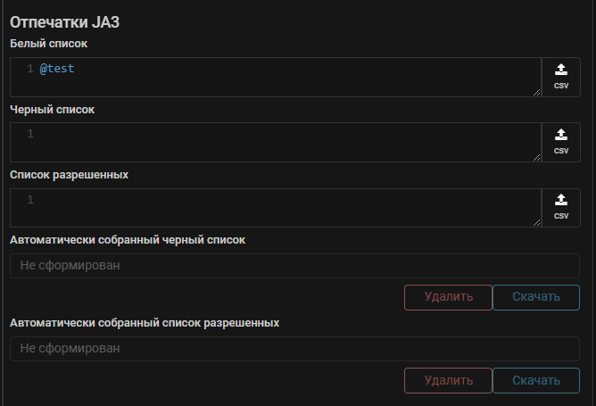 В настройках системы теперь можно задать именованные списки JA3-отпечатков. Логика