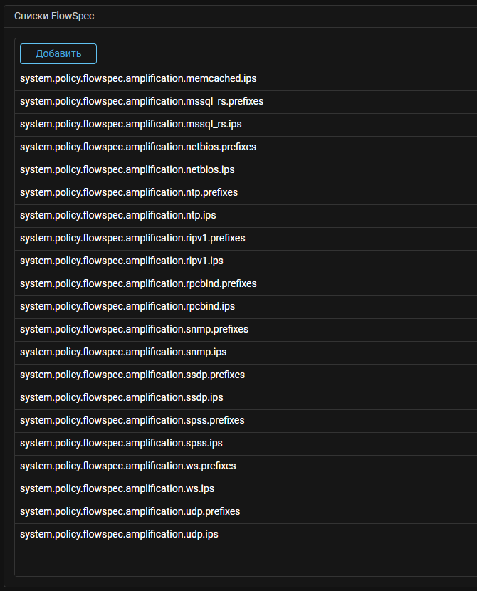 В систему добавлены новые системные списки FlowSpec-правил для противодействия амплификациям.