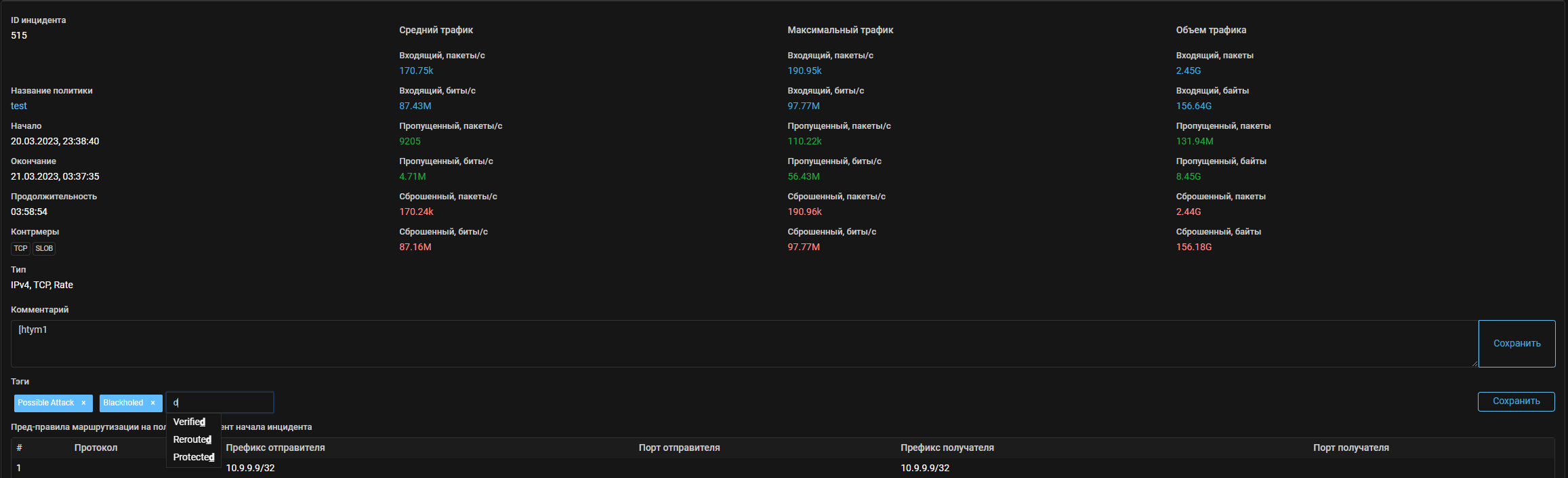 Теперь в TBL общей защиты можно проверить, в каких политиках защиты заблокирован IP-адрес.
