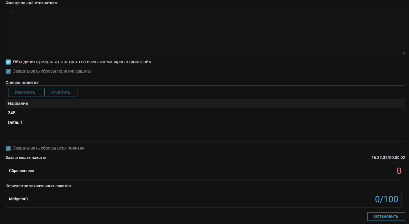 PCAP. Добавлена возможность захватывать сбросы политик в общей защите.