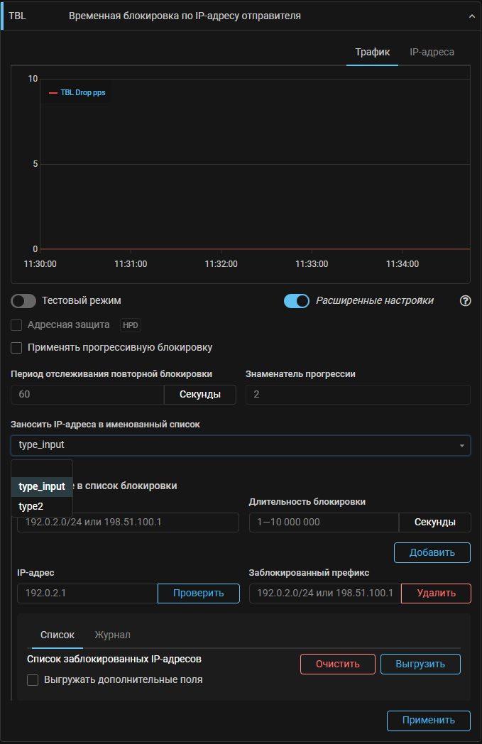 TBL6. Добавлен механизм наполнения именованного списка заблокированными IP-адресами.