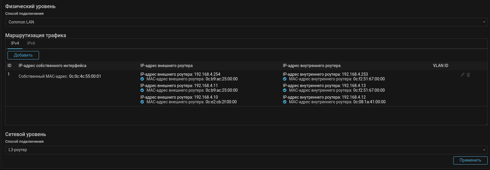 Если внешние или внутренние роутеры присылают кадры с указанием реальных MAC-адресов устройств вместо виртуального, следует указать в настройках список реальных IP-адресов роутеров, чтобы MITIGATOR мог определить соответствующие им MAC-адреса. В случае если кадры от всех устройств FHRP приходят с указанием виртуального MAC-адреса, достаточно указать только виртуальный IP-адрес.