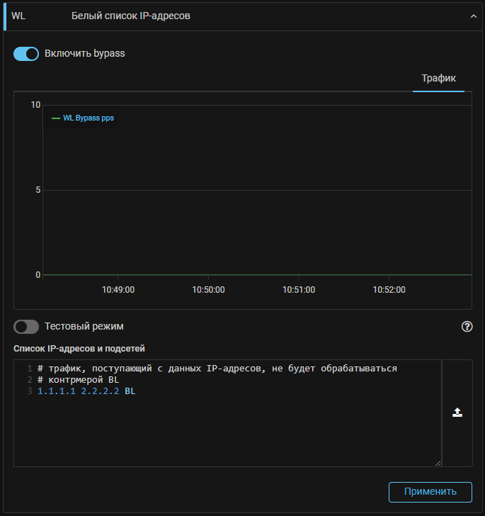 WL. Добавлена возможность пропускать трафик мимо контрмеры BL.