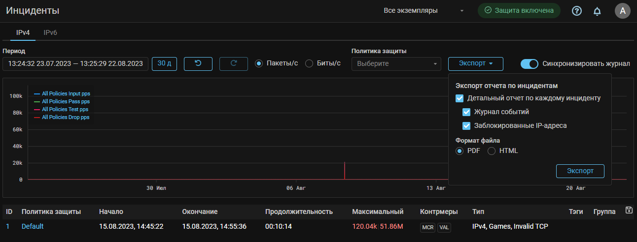 В экспортируемые отчеты по инцидентам добавлены графики трафика и правила маршрутизации на политику в момент начала инцидента.