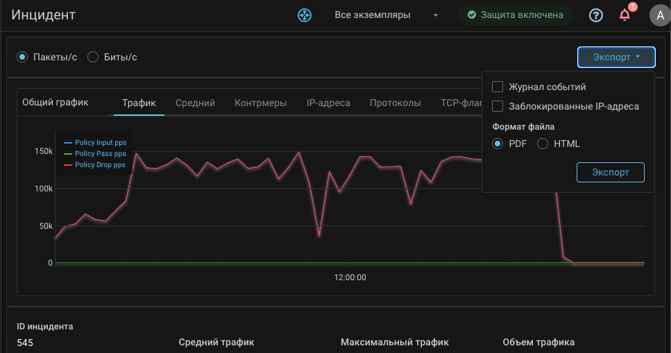 На странице инцидента добавлена возможность экспорта отчета в формате PDF и HTML.