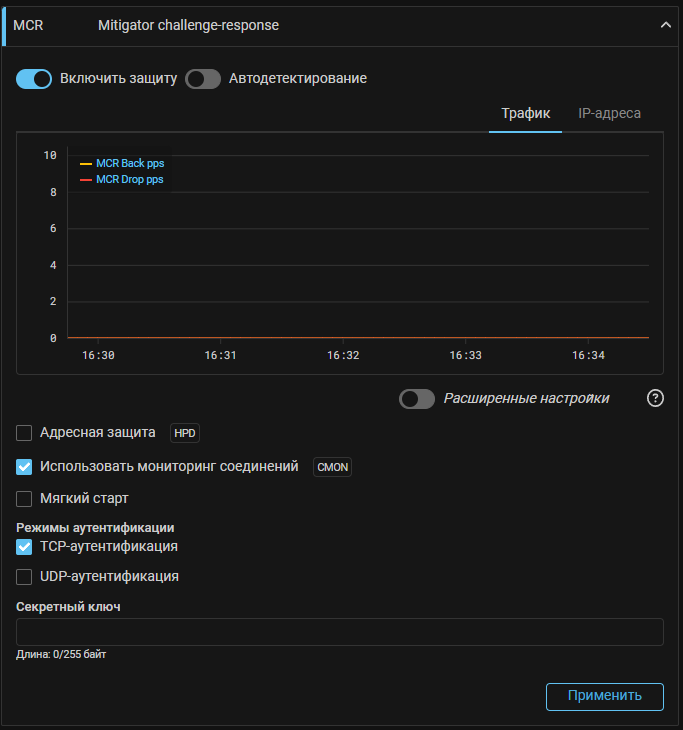 Теперь можно указать IP-адреса, трафик на которые контрмера будет пропускать без обработки.