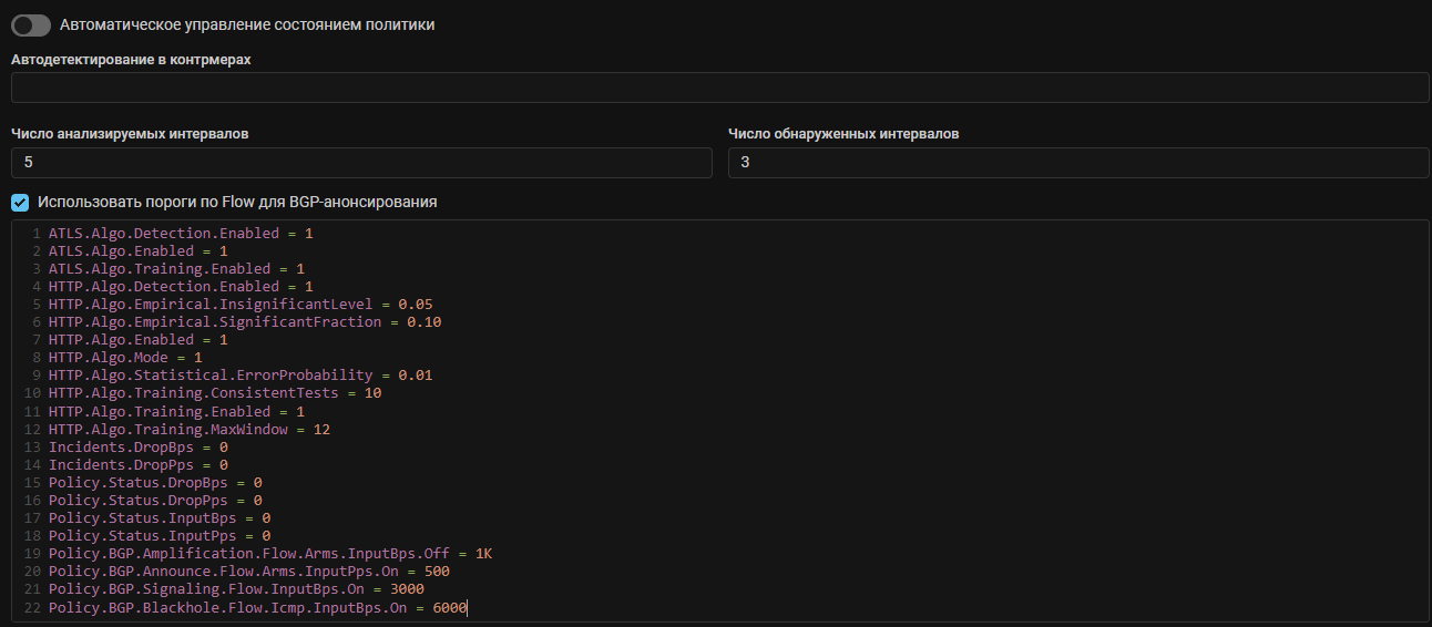 Detect. Добавлено отключение порогов автодетектирования для управления BGP-анонсированием по данным коллектора.
