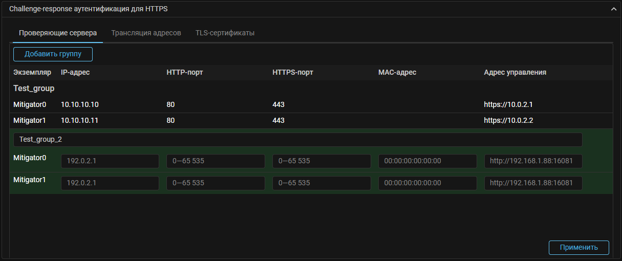 Для этого в настройках системы нужно создать группу проверяющих серверов и задать соответствие между всеми доступными dataplane и конкретными Web-challenger.