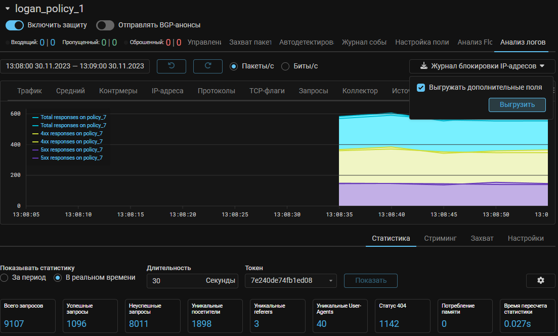 Теперь на вкладке «Анализ логов» можно выгрузить журнал блокировки IP-адресов с указанием причины.