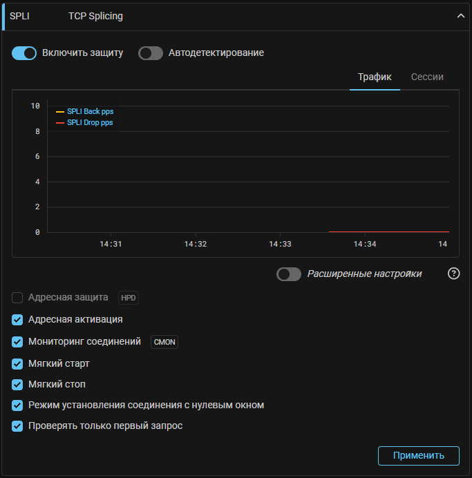 Теперь SPLI, аналогично TCP, может активировать защиту только для IP-адресов получателя, для которых замечено превышение по скорости поступления TCP-сегментов с определенными флагами.