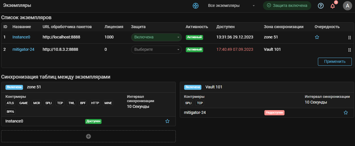 В версии v23.12 добавлены механизмы синхронизации данных между экземплярами MITIGATOR,