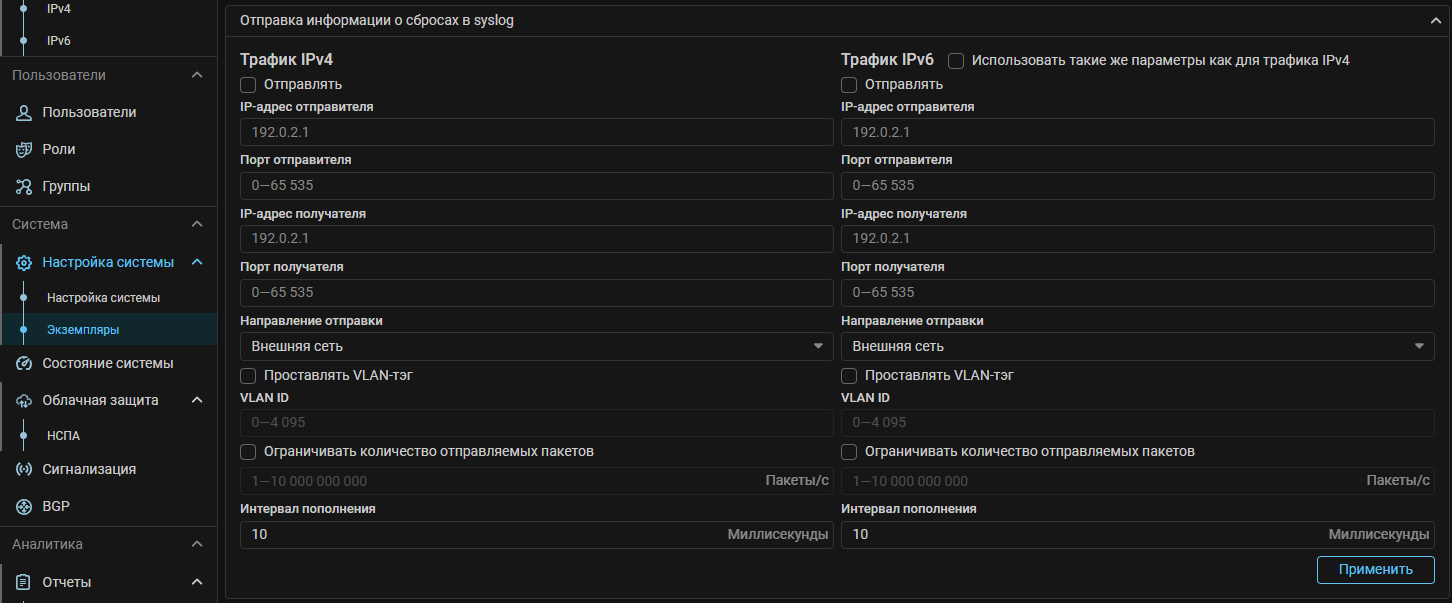 чекбоксе «Использовать пороги по Flow для BGP-анонсирования».