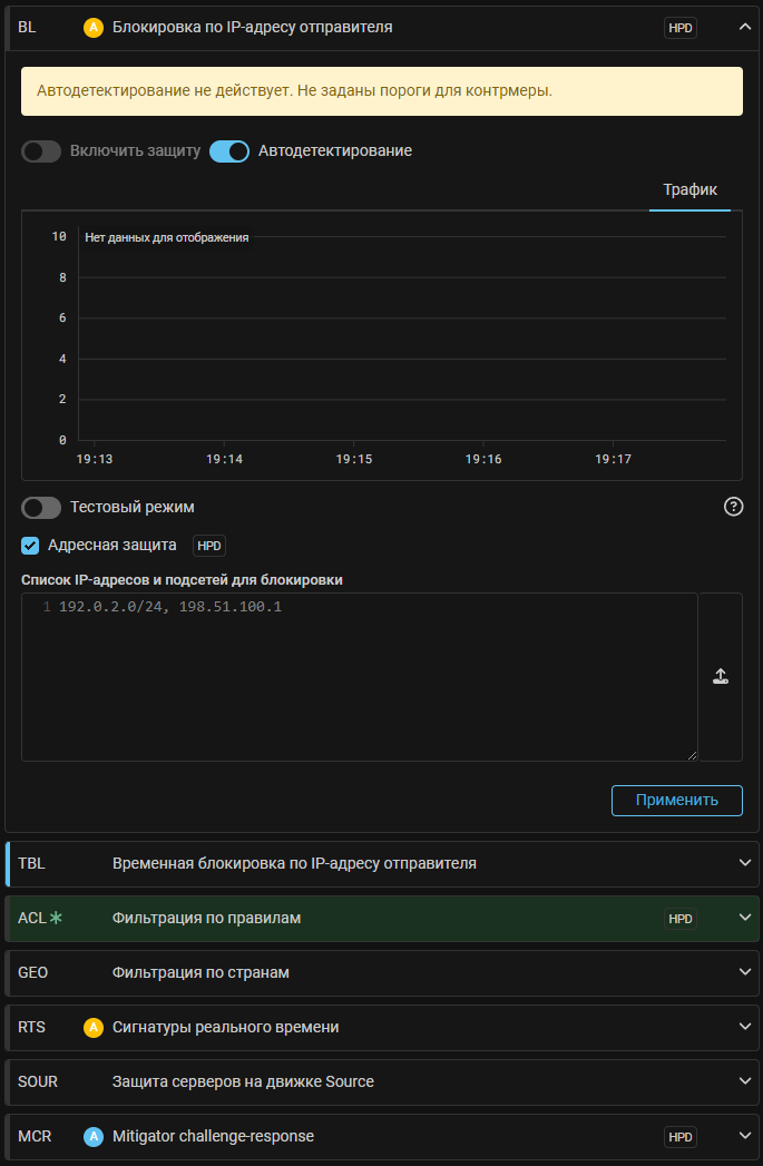Аналогично синхронизируются данные списка блокировки контрмеры TBL, что позволяет при переключении трафика на другие обработчики пакетов продолжать блокировать атакующих.
