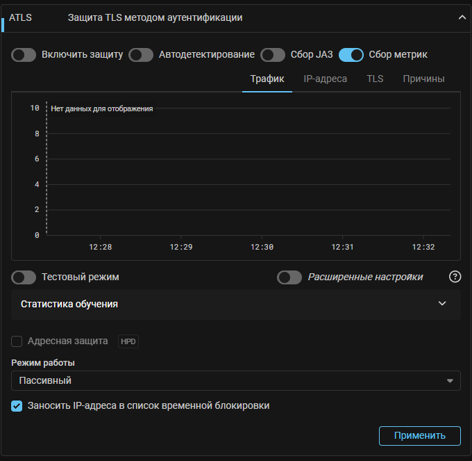 В контрмеру добавлен переключатель сбора метрик ClientHello. Это позволяет механизму автодетектирования активировать другие контрмеры по метрикам ATLS, даже если сама контрмера ATLS выключена.