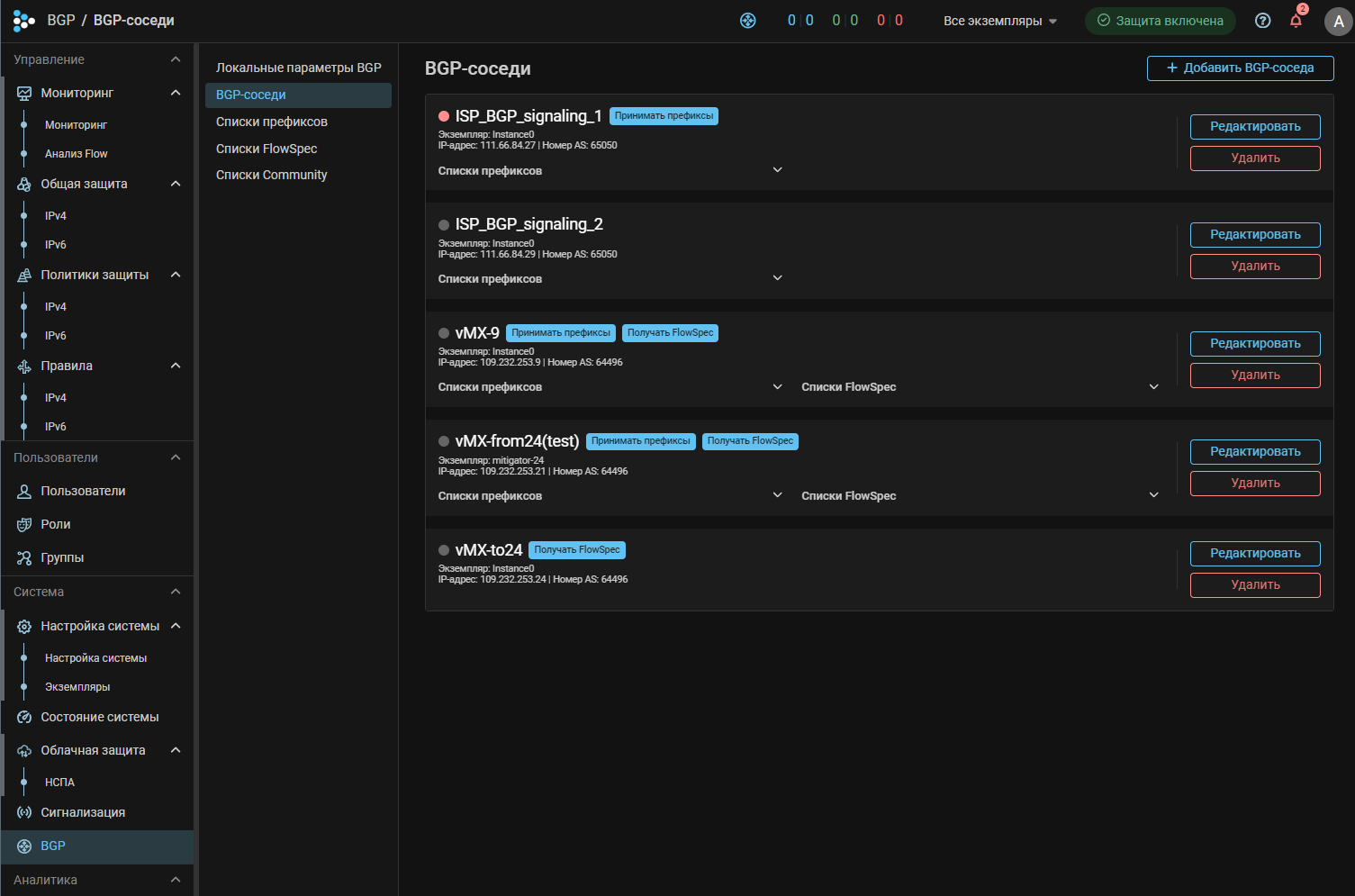 и Policy.Status.Flow.Drop{Bps, Pps}, которые управляют статусом политики защиты.