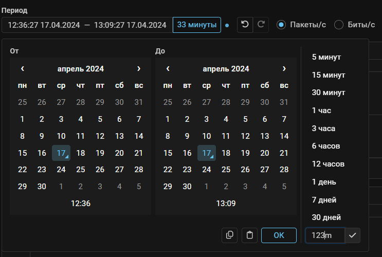- Добавлена возможность задавать период отображения на графиках через указание произвольного количества минут, часов или дней от текущего момента.