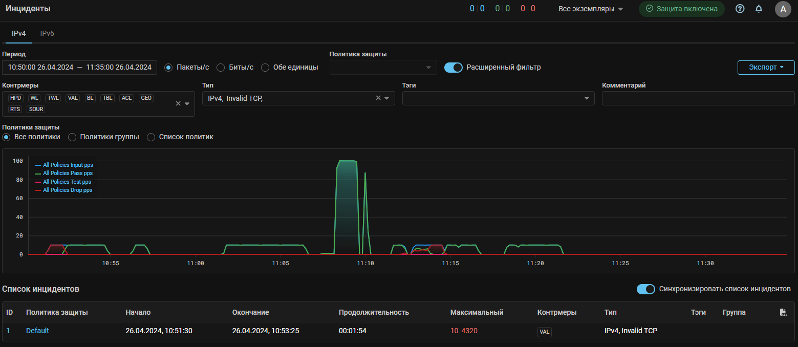 В версии v24.04 переработан детектор адресной защиты, переработан раздел «Анализ Flow»,