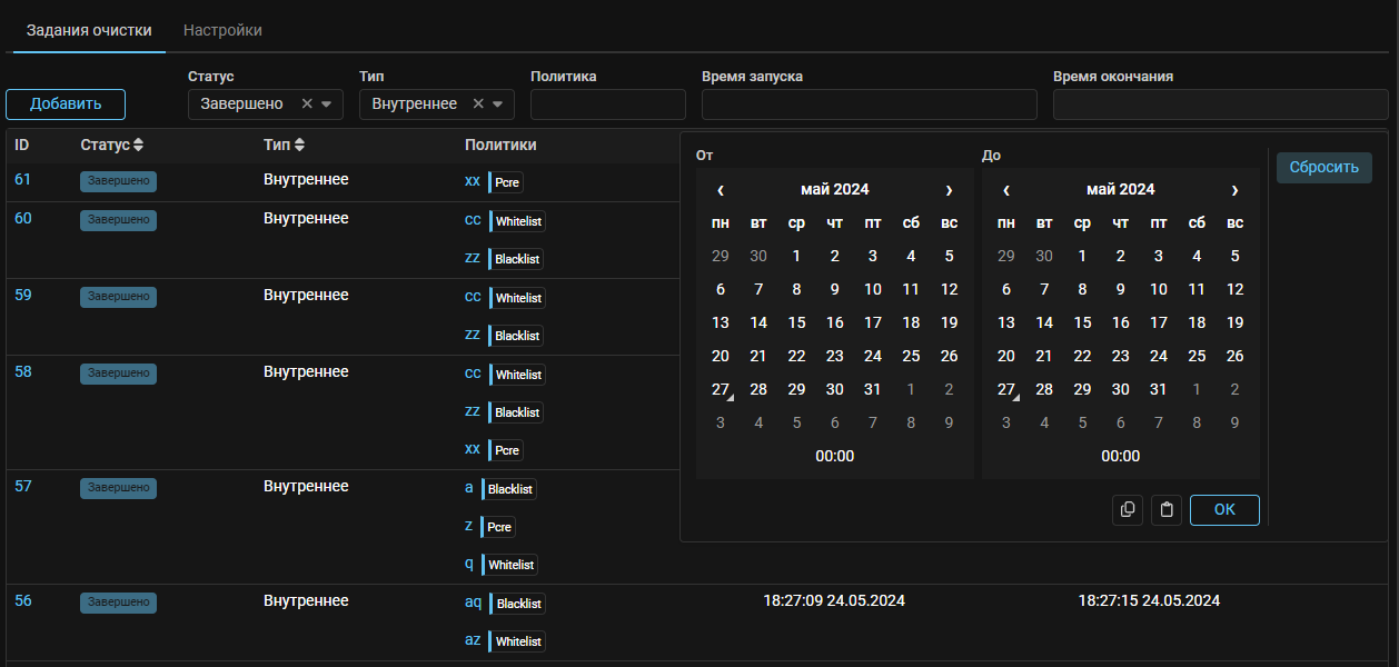 UX. Добавлена фильтрация заданий очистки НСПА.