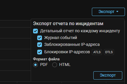 В экспортируемый отчет по инцидентам теперь можно добавить информацию о причинах блокировок IP-адресов из журналов блокировок контрмер ATLS и DTLS.