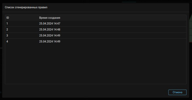 RTS. Добавлен просмотр списка сгенерированных правил.